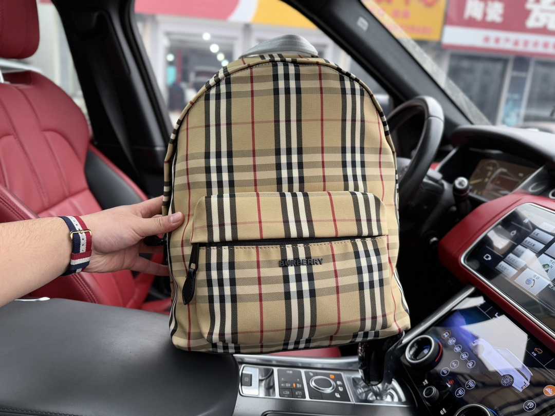 📷High-end item‼️ New “BURBERRY” Burberry Backpack💼 Burberry Double-Shoulder Bag Travel Bag Vintage Shiny Metal Accessories Decorative Retro Checkered Pattern Double Zipper Opening and Closing Polyamide Backpack, Shoulder Bag for Men in Khaki, with Exquisite Leather Trimming🔅 Ultra-high-definition hardware logo, dedicated lining. Super smooth zipper, perfectly smooth edges, exquisite craftsmanship with attention to every detail! A must-have for trendy men and fitness enthusiasts. Dimensions: 30.5x42.5x14.5cm