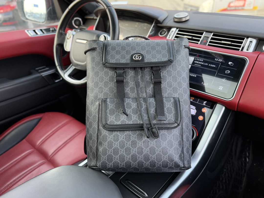 📷High-end item‼️ New “GUCCI” Gucci Backpack 💼 GUCCI Gucci shoulder backpack Ophidia black-tone accessories with double G logo, canvas with leather trim, backpack, medium size, men's, black, high-definition hardware logo, dedicated interior. Smooth zipper, polished edges, exquisite workmanship with attention to every detail! A must-have for trendy men. Size: 30x39x13cm