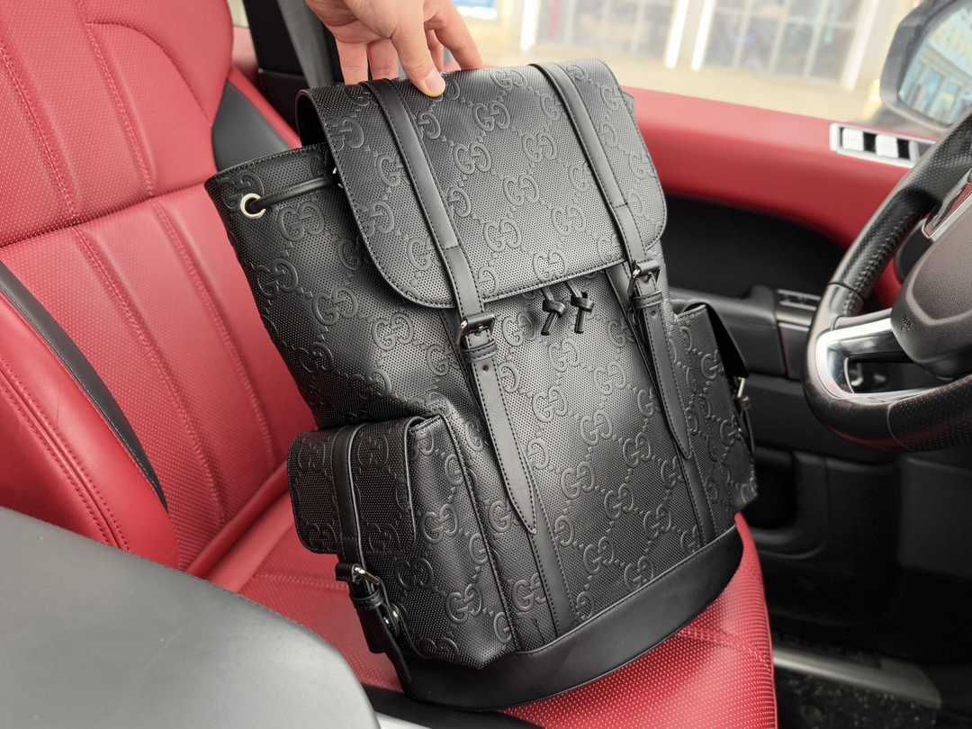 📷High-end item‼️ New "GUCCI" backpack 💼 Gucci men's backpack for travel, featuring the same GG pattern as seen on celebrities in a striking black color. It also has webbed decorative shoulder straps and black leather trim. Large-capacity backpack with classic embossed logo, made of soft gray GG Supreme leather, covered with microfiber fabric, complemented by black leather edges. Ultra-high-definition hardware, smooth zippers, and dedicated interior lining. A must-have for men! Dimensions: 34x42x16cm