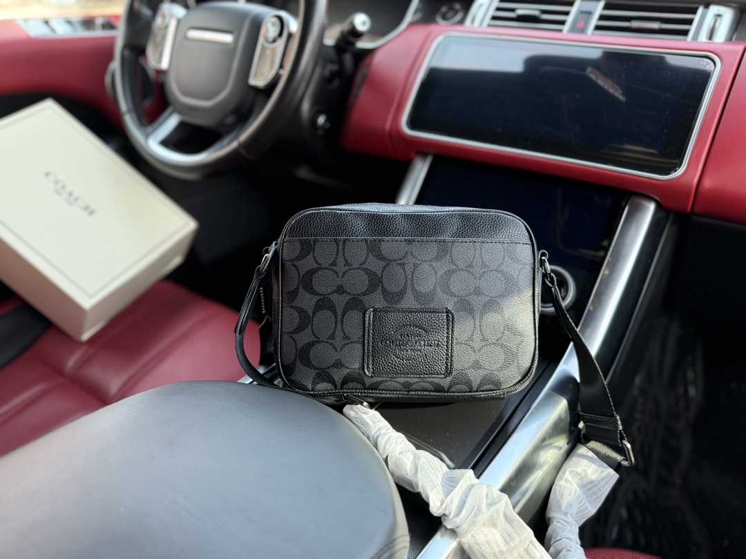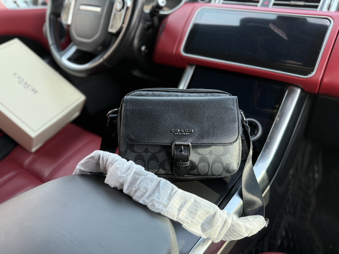 📷 High-end item‼️ New “COACH” shoulder bag 💼 COACH Hudson 23 messenger bag with zipper closure, adjustable shoulder strap, signature canvas and leather mix, shoulder and crossbody bag, medium size, men's style, brass color combined with charcoal and black. High-definition hardware logo, dedicated interior lining. Smooth zipper, super smooth edges, exquisite craftsmanship with attention to every detail! A must-have for men. Specifications: 23x18x6.5cm. Comes with: foldable gift box 🎁