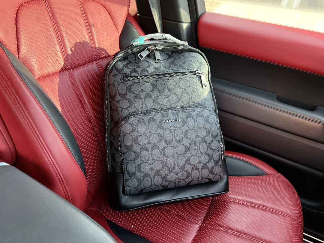 📷High-end item‼️ New "COACH" Backpack 💼 Coach upgraded version backpack Graham 32, solid color classic monogram, zipper closure, large capacity, fabric with synthetic leather, backpack, large size, men's style, black, double zippers, includes a laptop compartment, zipper pocket inside, high-definition metal logo emblem, dedicated inner lining. Smooth zipper, polished edges, exquisite craftsmanship, every detail is perfect! Must-have for trendy men. Size: 32x42x13.5cm