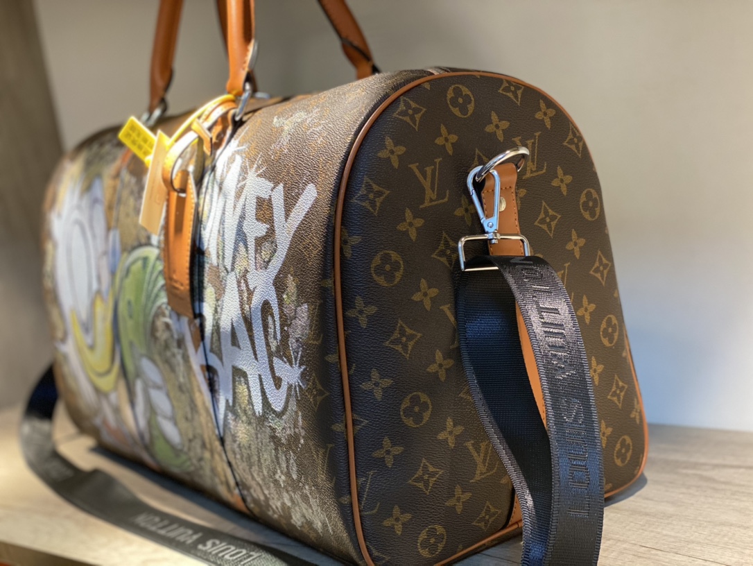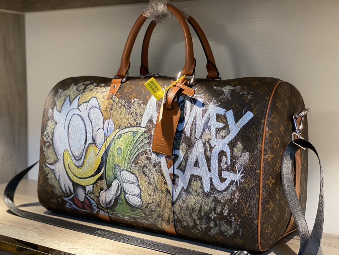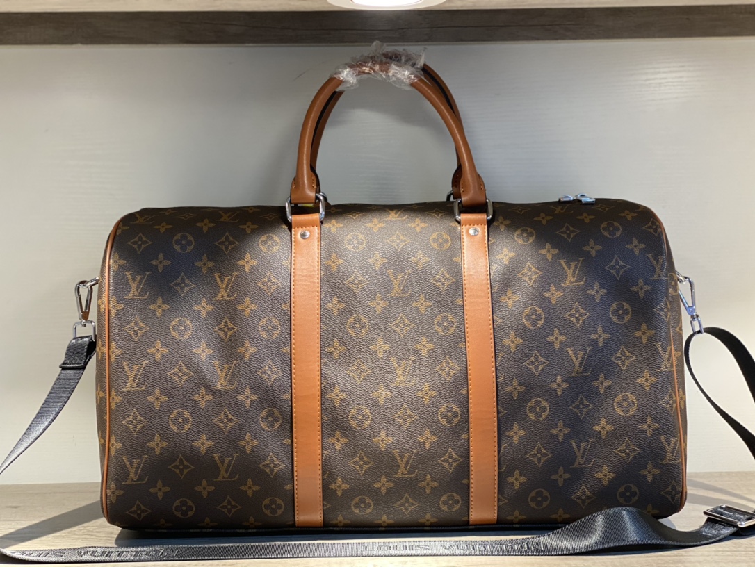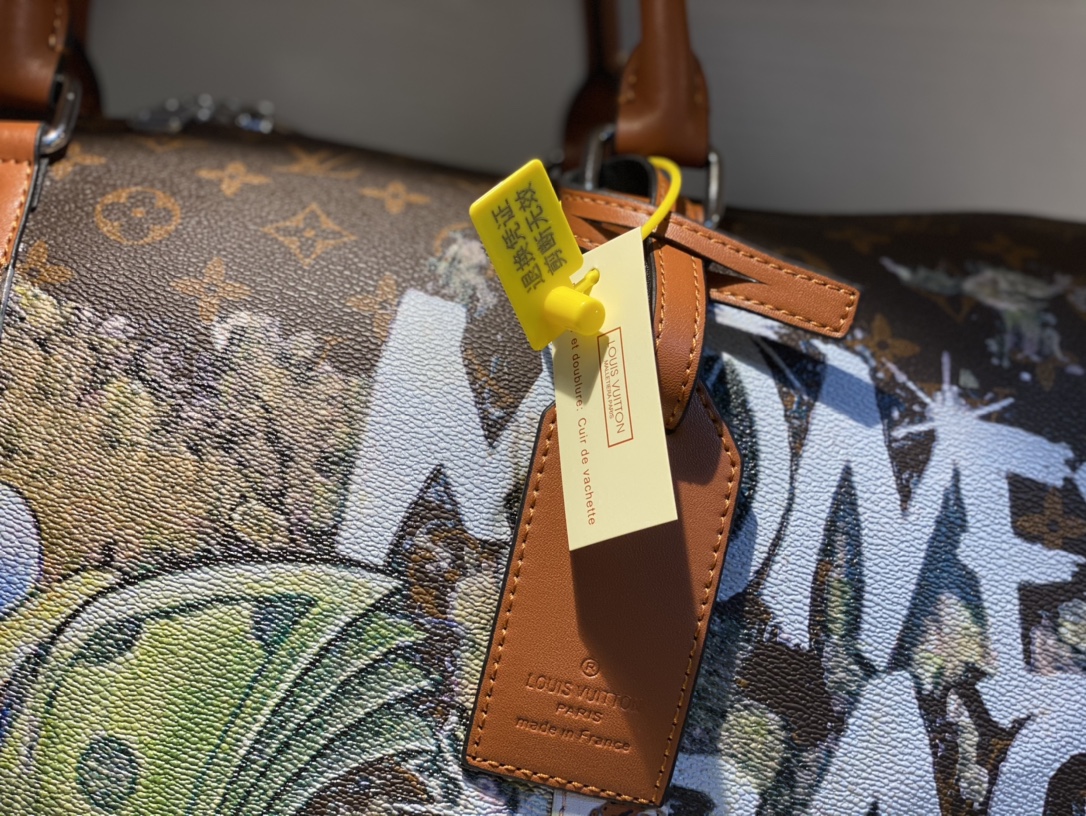 Lv top-tier high-quality latest model, practical, versatile, and fashionable travel bag, luggage bag, crossbody large bag, made of boutique PVC eco-friendly material, with adjustable black webbing strap, featuring metal buckle, white metal logo letter details, zipper inner pocket and smartphone pocket, inner lining with hidden small pocket, black nylon lining (comes with customs sticker 🛃 and invoice 🎫)