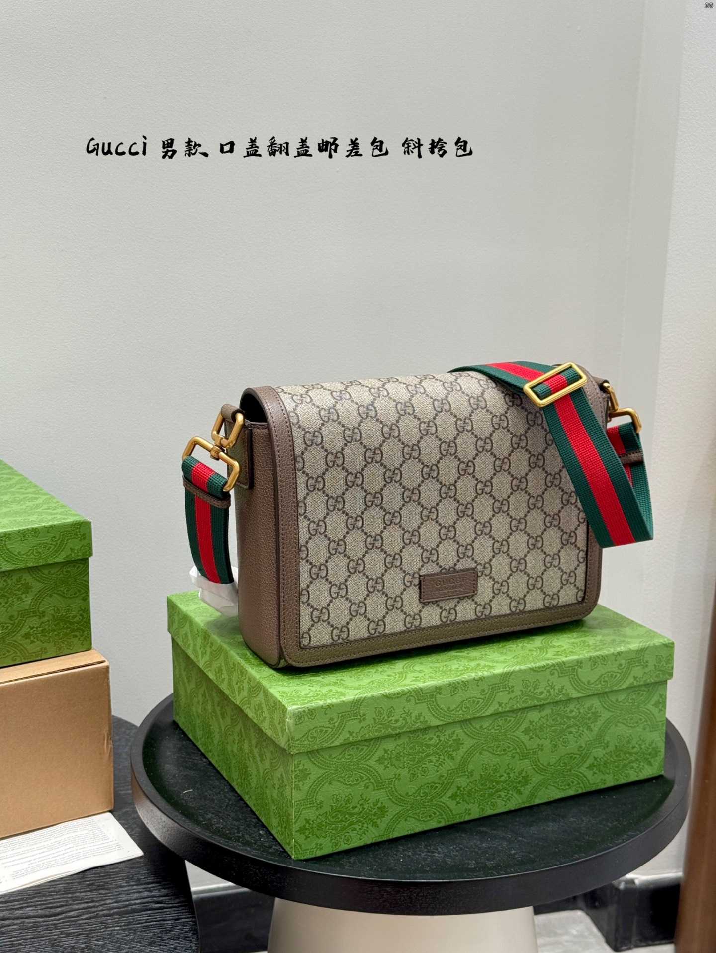 Gucci men's flap bag GG shoulder bag, messenger bag. Reimagined in a unique new way. Not only a reinterpretation of the classic design, but it also evokes a punk style, giving the collectible piece a distinctive and fashionable charm.