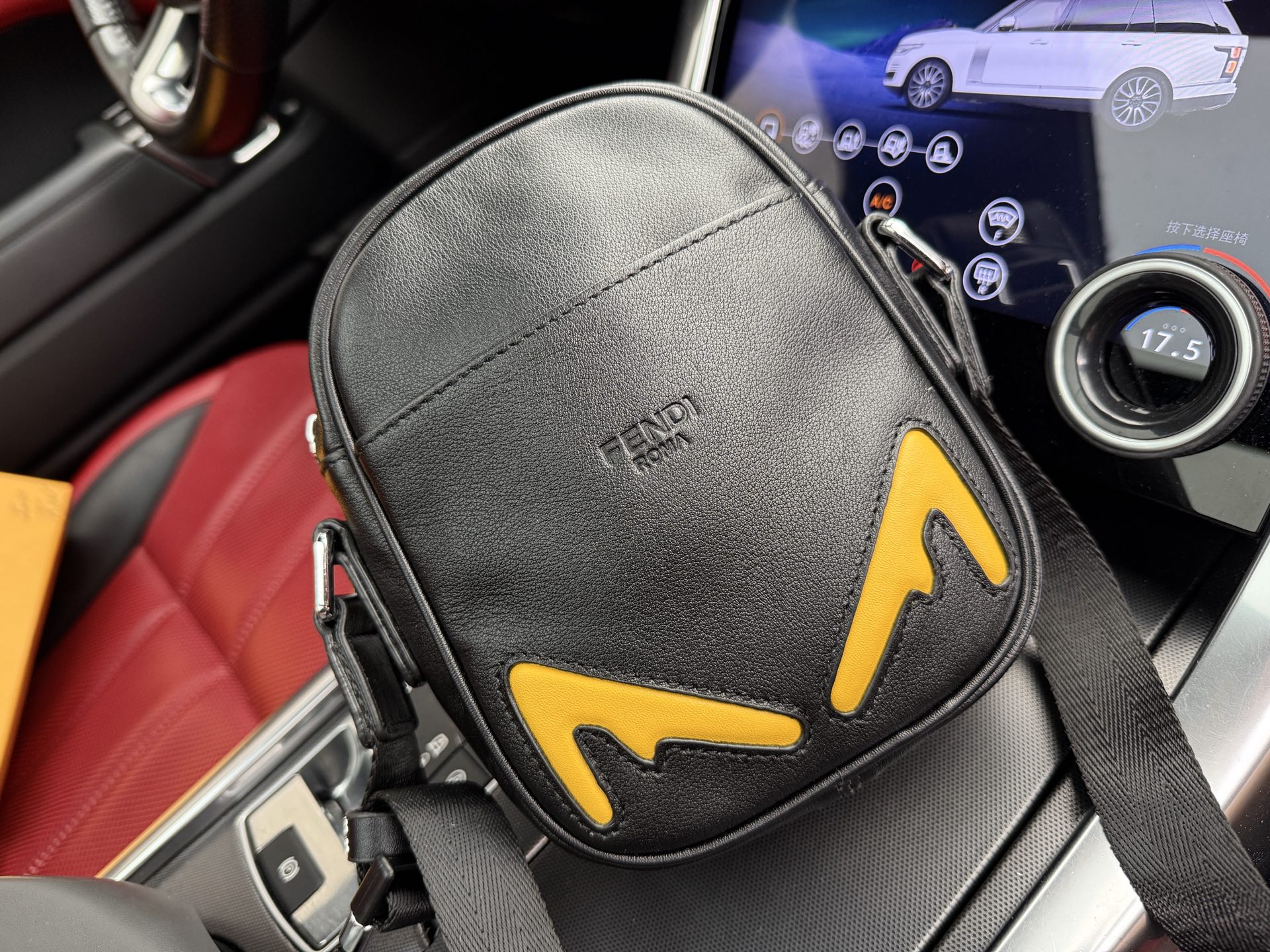 📷High-end item‼️ New “FENDI” Fendi Shoulder Bag 💼 FENDI Fendi Crossbody Bag with 3D little devil eyes, vertical style, leather messenger bag, camera bag, shoulder or crossbody bag for men, black, made with imported cowhide leather 🐂 Retro monogram logo leather badge. High-definition metal logo, interior compartments! Special inner lining. Smooth zipper, exquisite craftsmanship with attention to every detail! A must-have for men. Size: 14x19.5x5cm, comes with gift box 🎁
