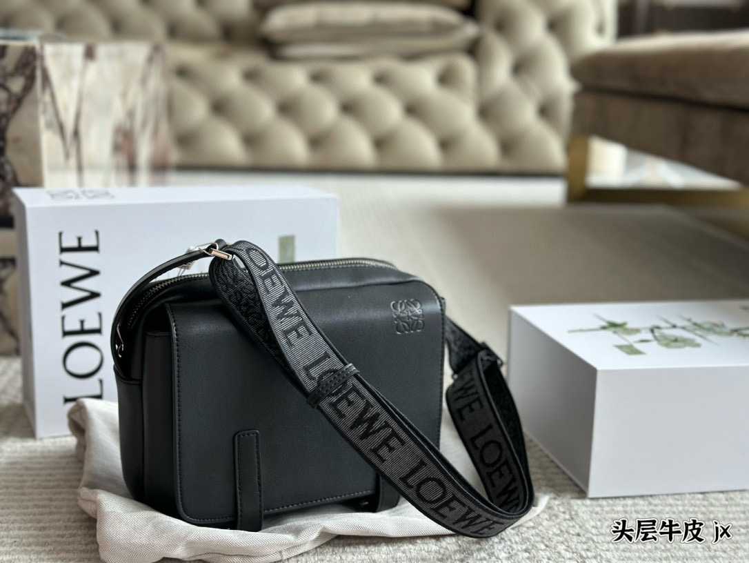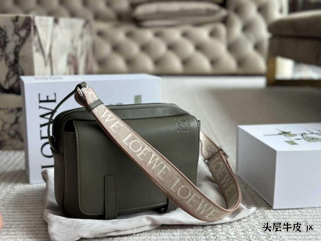 LOEWE Men's New Military Wide Shoulder Strap Printed Flap Messenger Bag, Single Shoulder Crossbody Bag. The bag has a very large capacity.