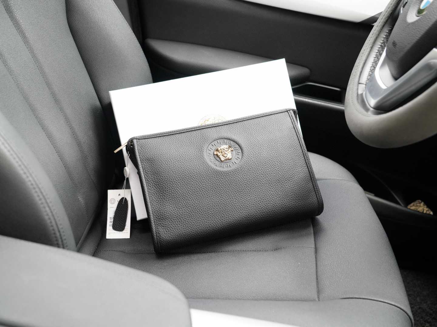 🇮🇹 VERSACE Official Website Synchronized High-Version Clutch, Globally Hot-Selling Item, Made from Genuine Leather, Excellent Texture, Classic and Versatile for Everyday Use, Timeless Design, Not Ordinary Market Goods, Trade Company Order, Comes with Full Packaging and Gift Box, etc. [Specification: 28x19x5]