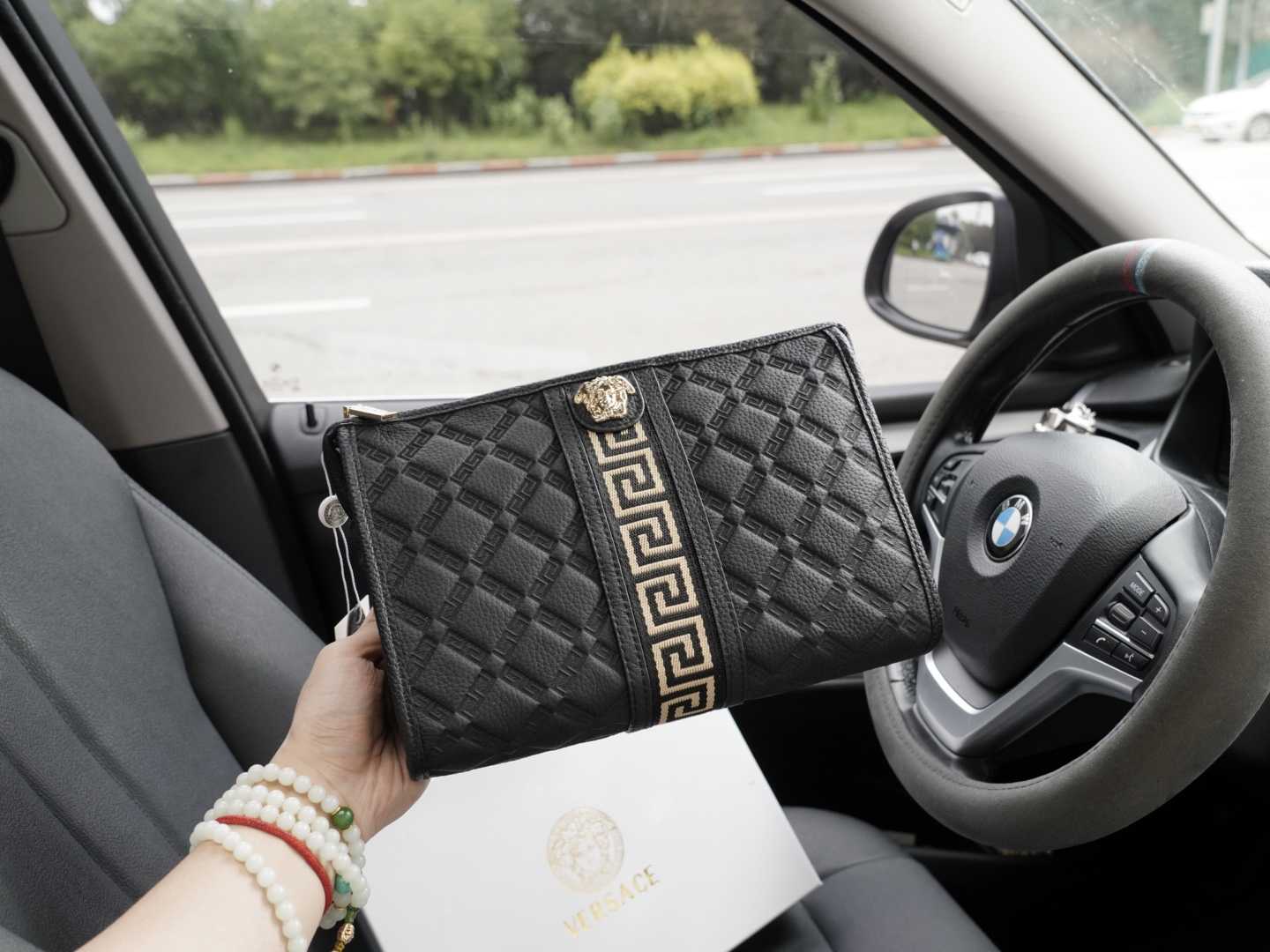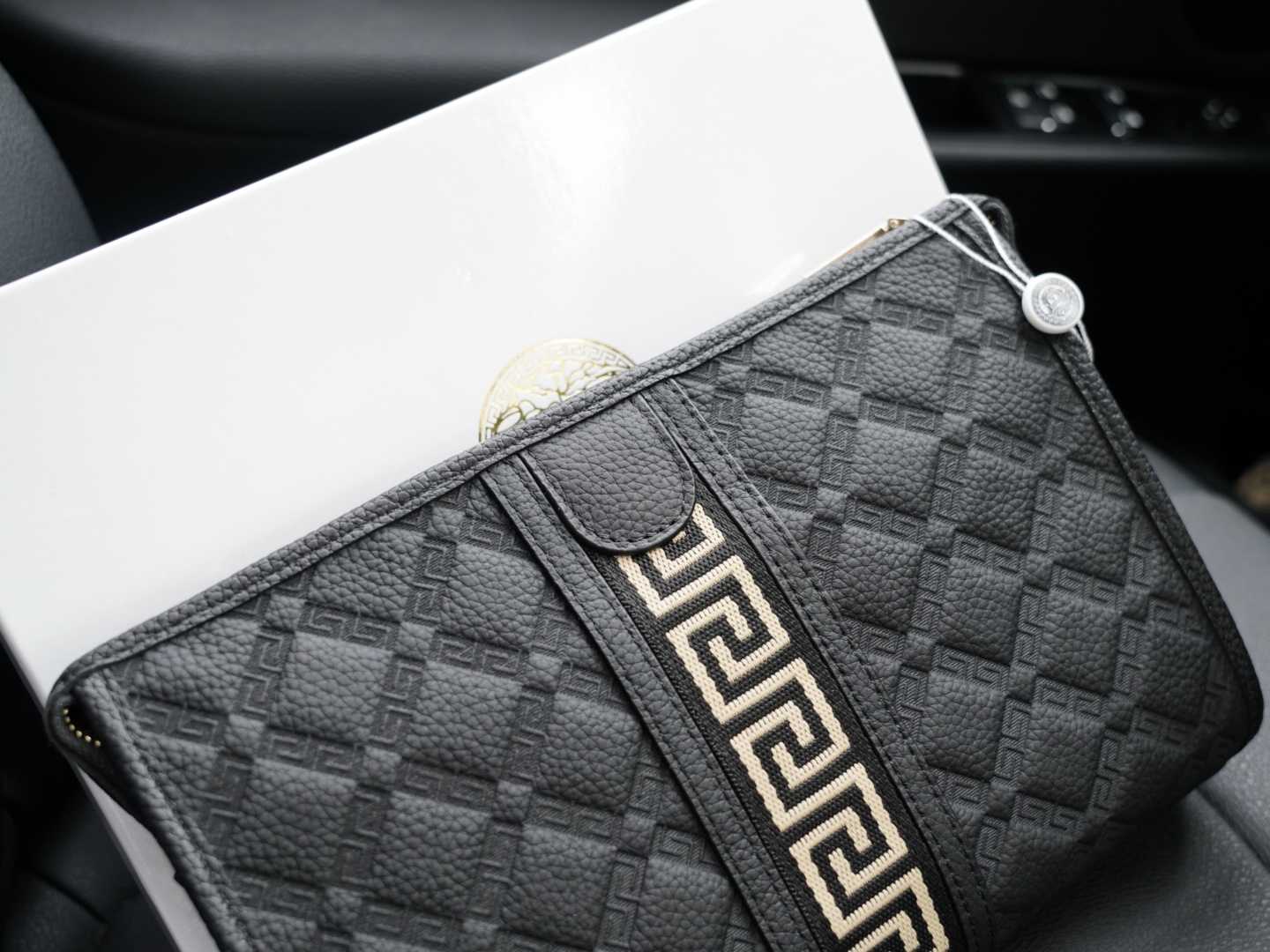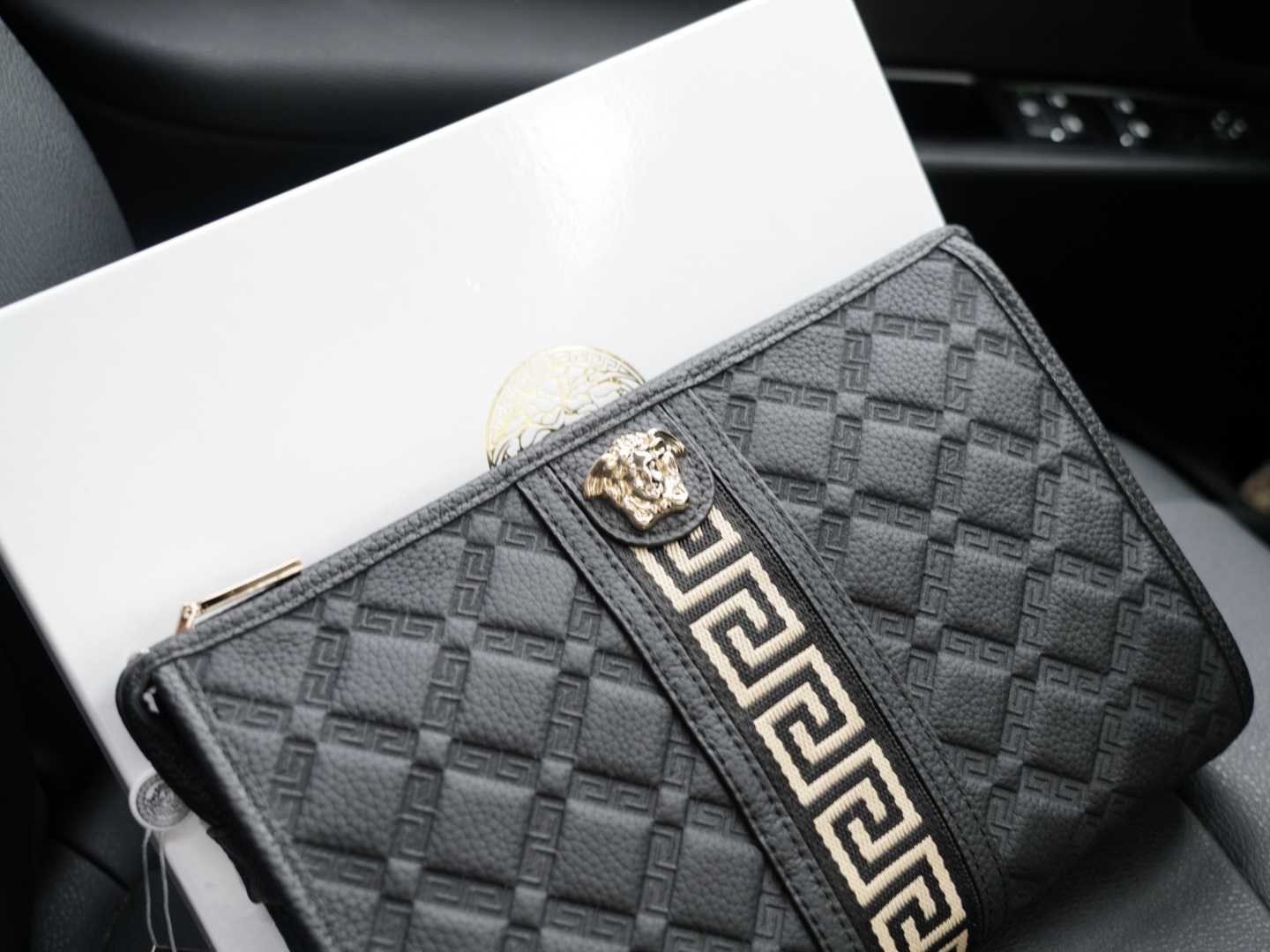 🇮🇹 VERSACE Official Website Synchronized High-Version Clutch, Globally Highly-Sought Item, Made from Genuine Leather, Excellent Texture, Classic and Versatile for Everyday Use, Timeless Design, Not Ordinary Market Goods, Trade Company Order, Comes with Full Packaging and Gift Box, etc. [Specification: 28x19x5]