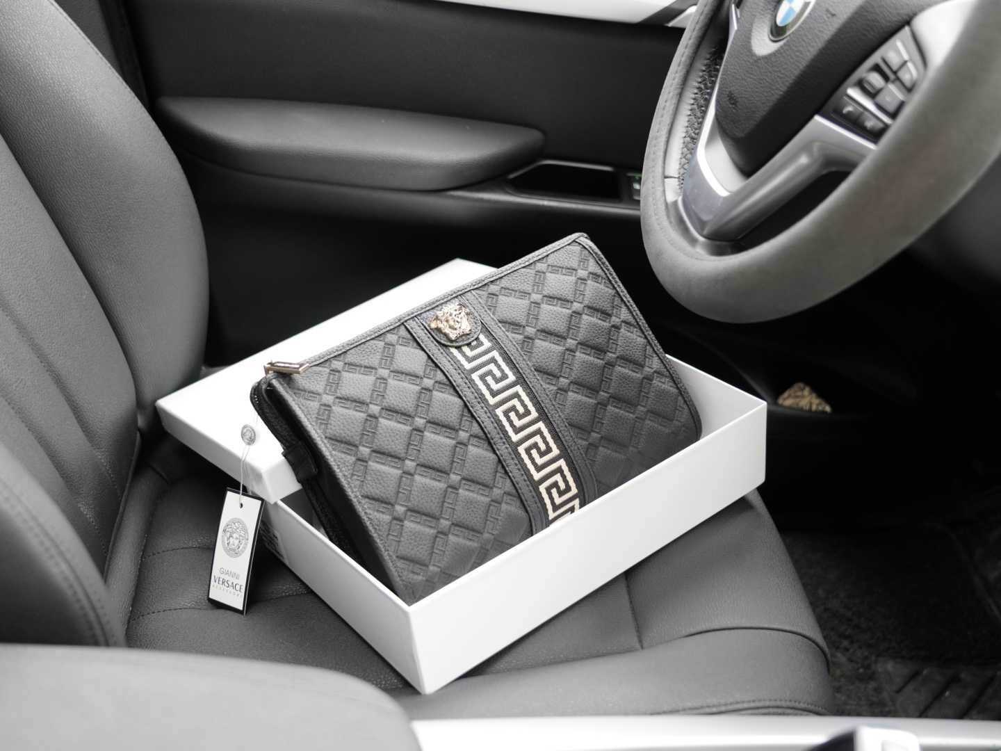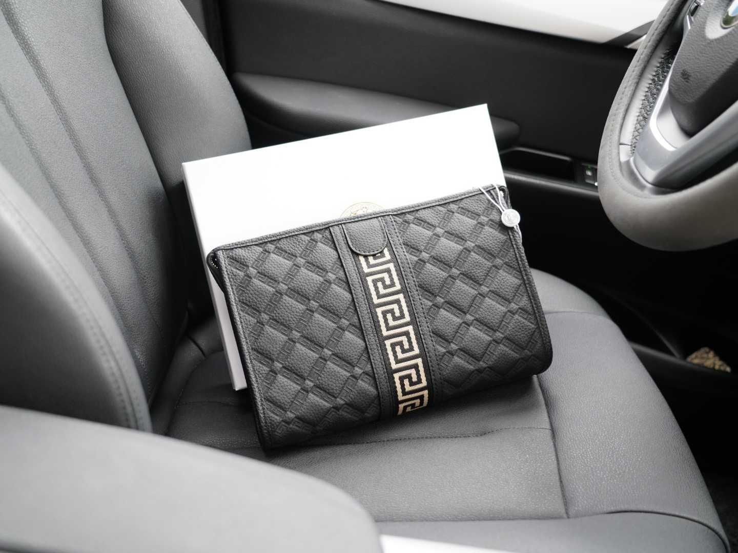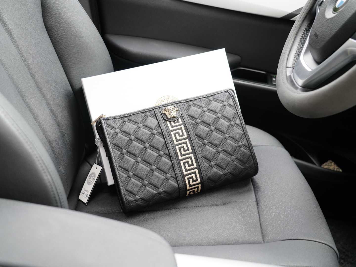 🇮🇹 VERSACE Official Website Synchronized High-Version Clutch, Globally Highly-Sought Item, Made from Genuine Leather, Excellent Texture, Classic and Versatile for Everyday Use, Timeless Design, Not Ordinary Market Goods, Trade Company Order, Comes with Full Packaging and Gift Box, etc. [Specification: 28x19x5]