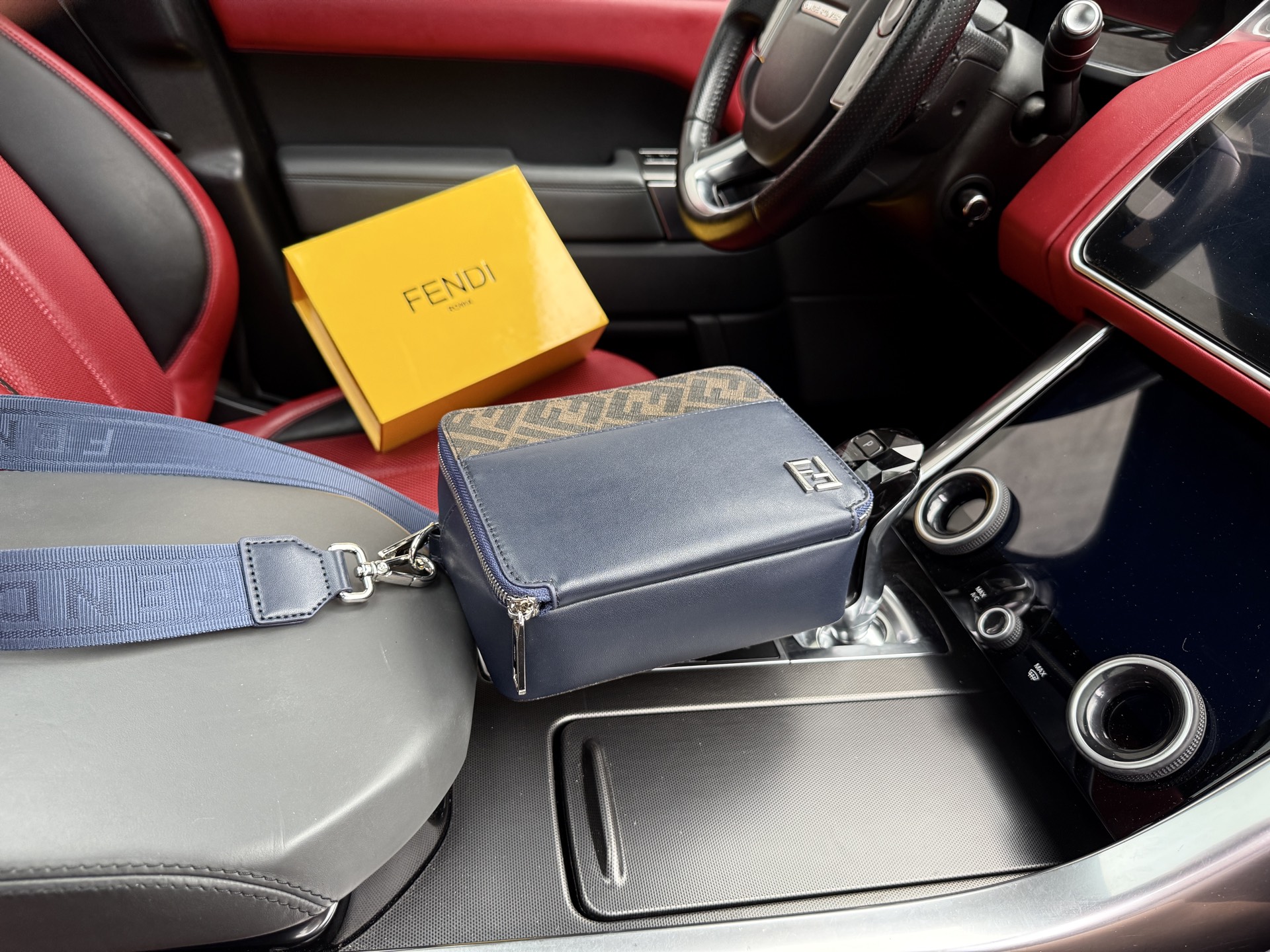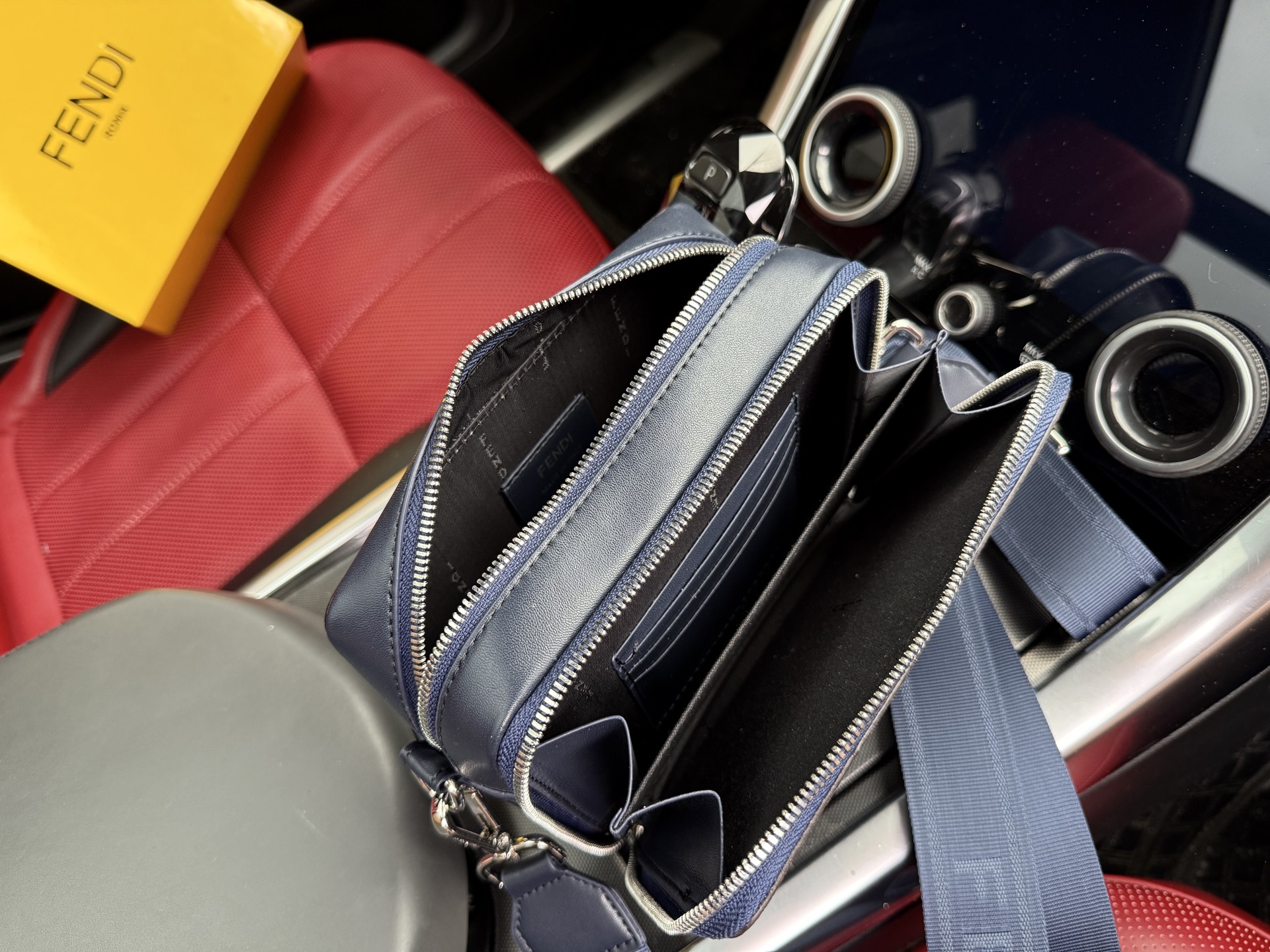 📷High-end item‼️ New “FENDI” shoulder bag 💼 FENDI crossbody bag, square FF zipper closure, adjustable and detachable shoulder strap, leather camera bag for men, dark blue with brown accents, imported with cowhide material 🐂 Retro monogram logo with leather badge. High-definition metal logo, internal compartments! Dedicated lining. Smooth zipper, exquisite craftsmanship with attention to every detail! A must-have for men. Size: 17.5x13x7cm, comes with a foldable gift box 🎁