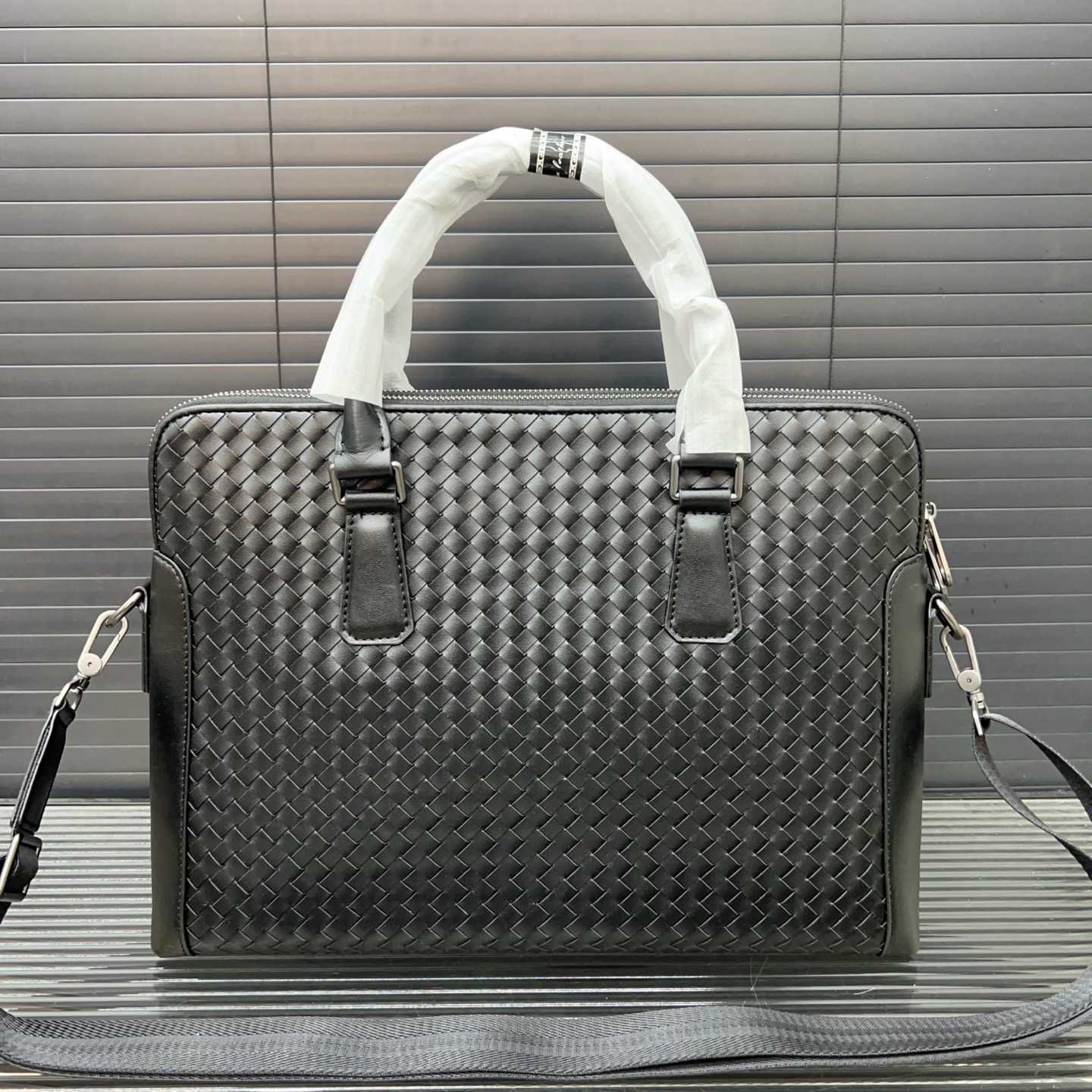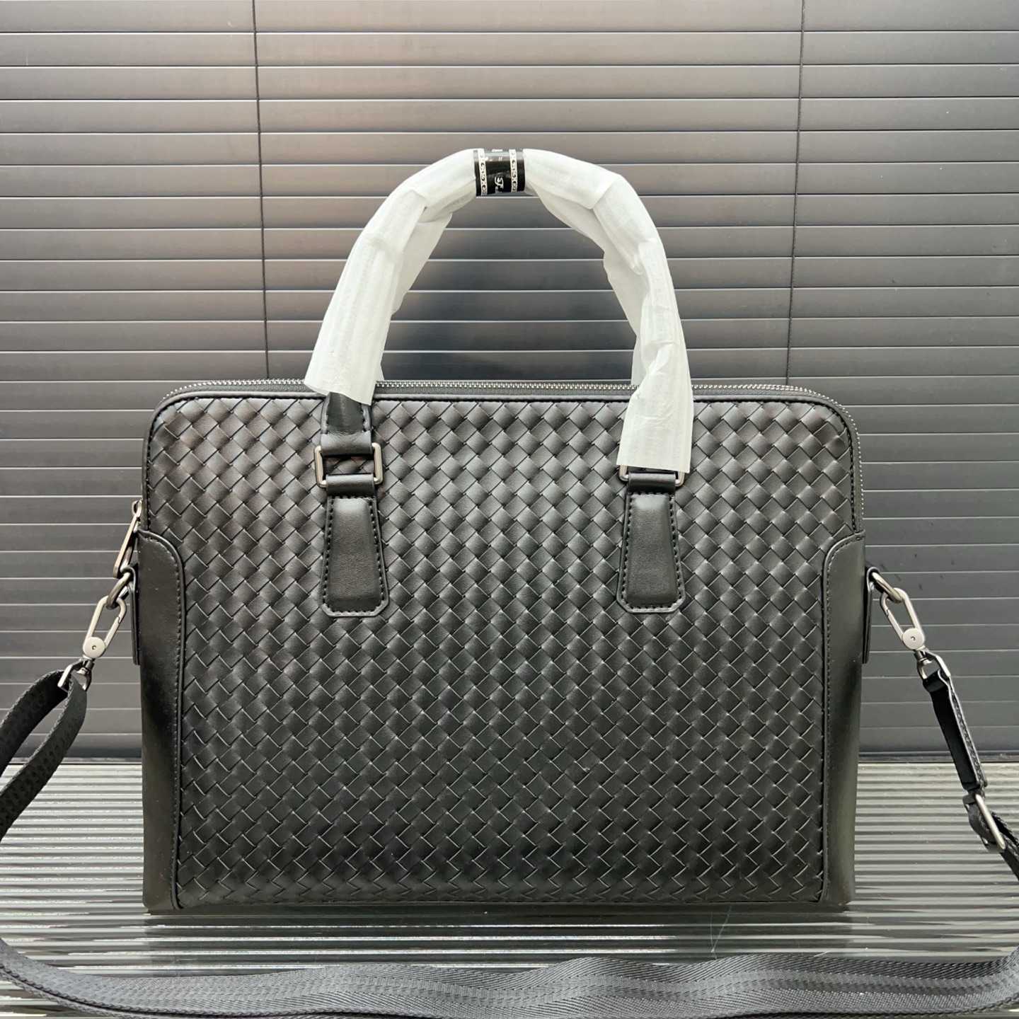 Bottega Veneta Business Casual Handwoven BV Men's Briefcase, Handheld and Crossbody Bag, Classic and Versatile, Actual Product Photos, Original Factory Material, Comes with Dust Bag, 38 x 29 cm