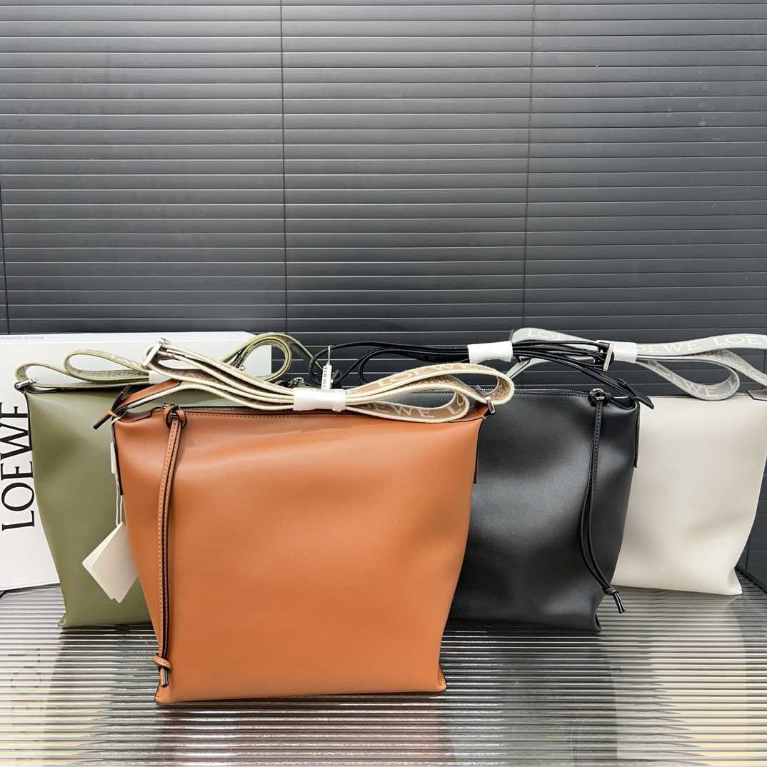 LOEWE Small Cubi top-grain leather shoulder and crossbody bag, laptop bag, embroidered shoulder strap, classic and versatile. Actual product photos, original factory materials, comes with a folding gift box. Size: 33 x 29 cm.