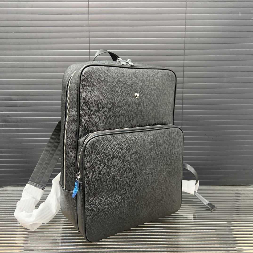 Montblanc Leather Multifunctional Backpack, Men's Leather Bag, Laptop Bag. Crafted with exquisite inlay workmanship, classic and versatile. Actual product photo, made with original factory materials, includes a dust bag. Size: 28 x 38 cm.