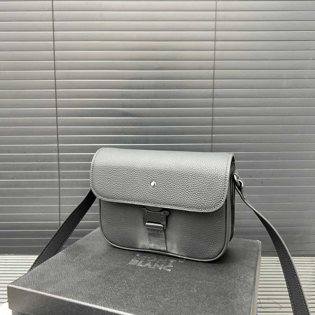 Montblanc Men's Leather Shoulder Bag, Crossbody Bag, crafted with exquisite inlay workmanship, classic and versatile. Real product photos, original factory materials, high-end quality, comes with a dust bag. Size: 21 x 17 cm.